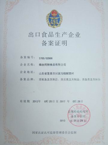 2012年3月、蓬萊市海洋と漁業(yè)局張洪波局長がリーダーとして,各主要リーダーイニングを連れて、弊社へ見學(xué)指導(dǎo)の仕事で、弊社張義強(qiáng)社長を接見した報(bào)告を與え、席上張局長が同翔食品の肯定致しました、同翔食品がもっと強(qiáng)く、大きくで、勵(lì)まして、これとともに「蓬萊市漁業(yè)協(xié)會(huì)副會(huì)長業(yè)者」を授與しました